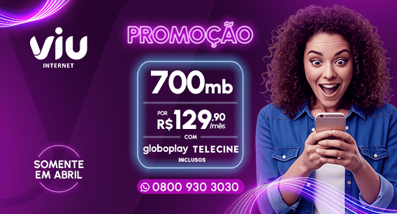 A Viu Internet acaba de liberar a promoção mais esperada da região. O plano de 700 Mega chega ao mercado com os streamings Globoplay e Telecine inclusos no pacote, por apenas R$ 129,90 mensais. A oferta é válida por tempo limitado. Para quem quiser aproveitar a novidade, precisa realizar sua assinatura até o dia 30 de abril. A promoção também vale para clientes que quiserem renovar seu plano.